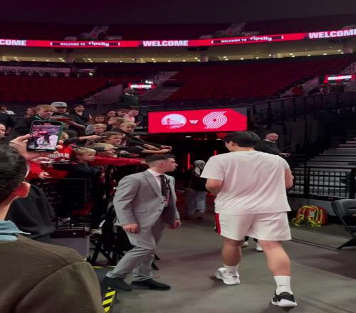 撕裂之城宠儿杨瀚森被一众波特兰小球迷围着求签名+合影!
